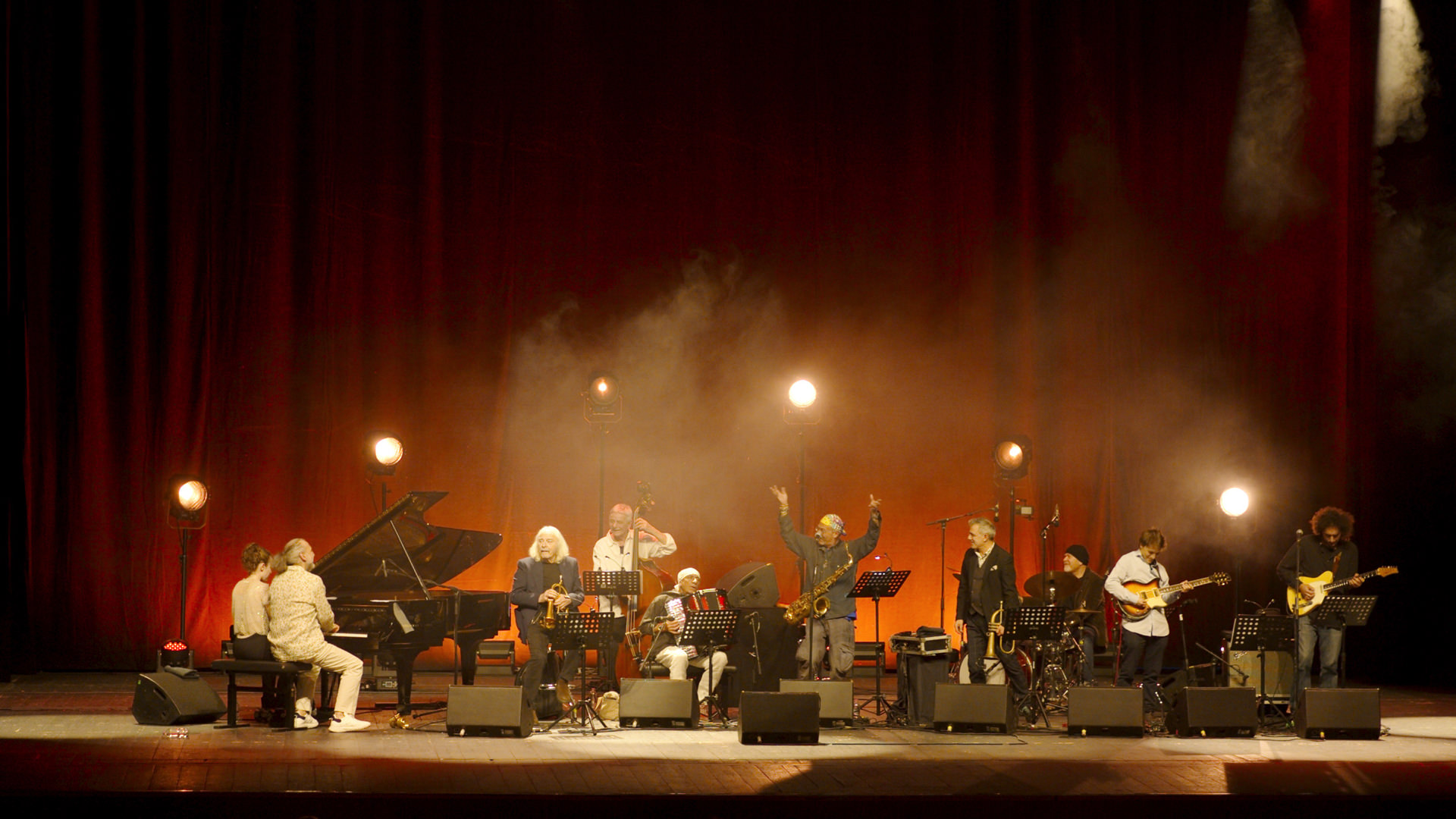Il pianista e compositore Stefano Bollani coordina un ensemble composto dai più grandi musicisti jazz italiani — Enrico Rava, Paolo Fresu, Daniele Sepe, Antonello Salis, Ares Tavolazzi, Roberto Gatto e tre talenti emergenti, Matteo Mancuso, Christian Mascetta e Frida Bollani Magoni. Trascorrono una settimana tutti insieme in una casa-studio, in preparazione di un concerto unico e irripetibile: un viaggio collettivo in cui il jazz diventa linguaggio, relazione, libertà.